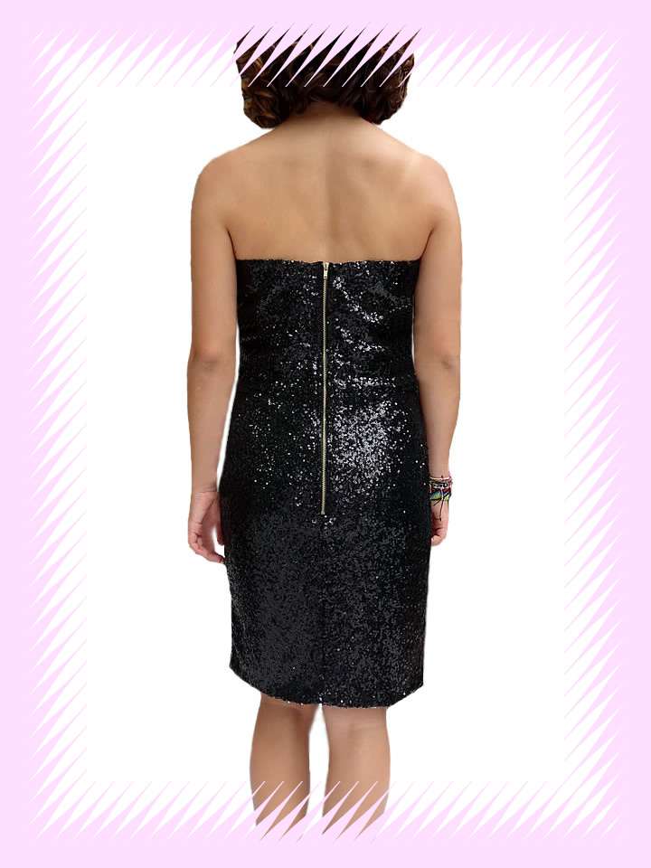 This modern glamour femininity and sensuality lightweight stretch jersey mini bodycon fit dress covered in shimmering sequins, that follows the natural curves of your body and a romantic sweetheart neckline with internal bust support non-slip silicone and back zipper closure.